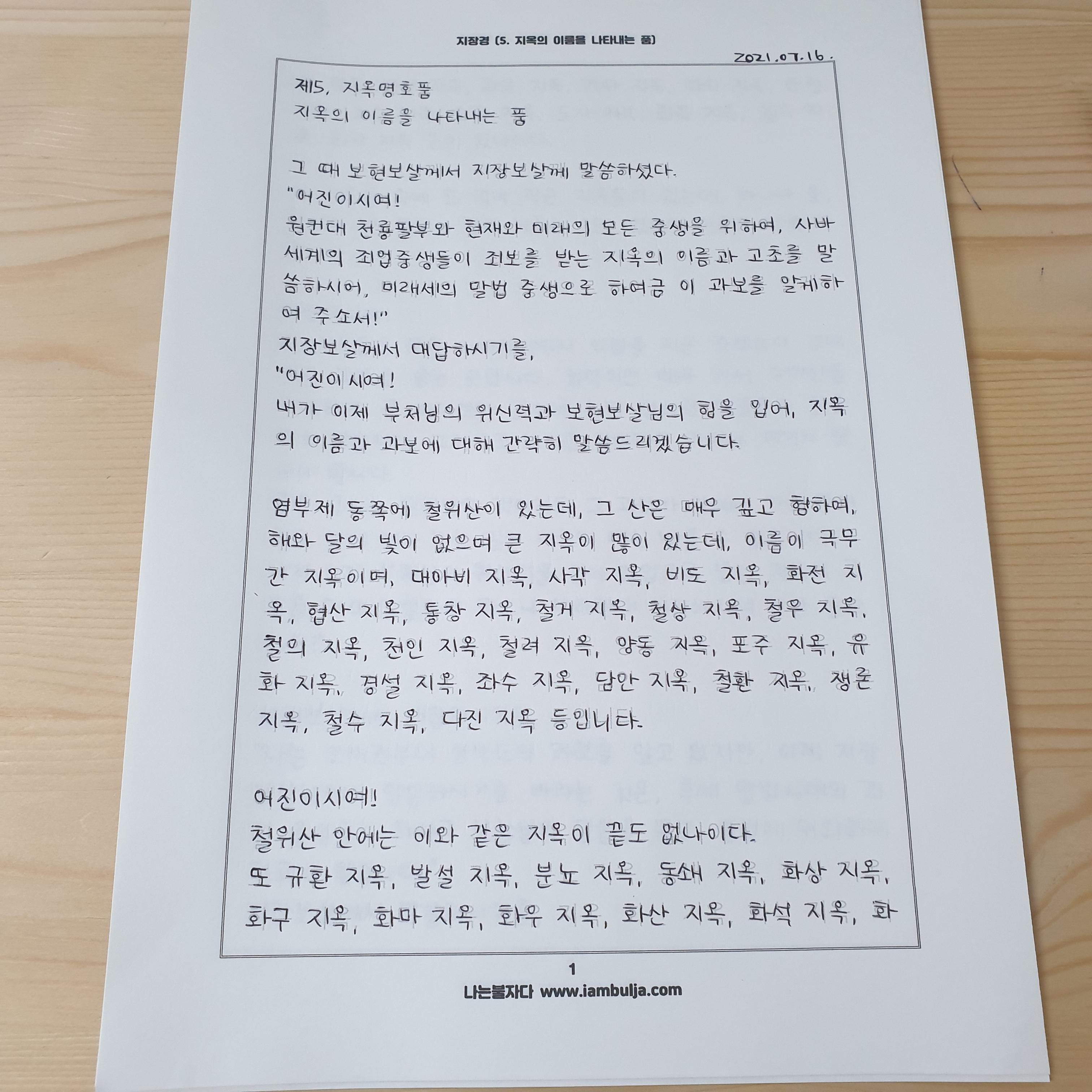 | 지장경 사경 7 (우리말 지장경, 사경지 양식 링크) (0) | 2021.07.22 |