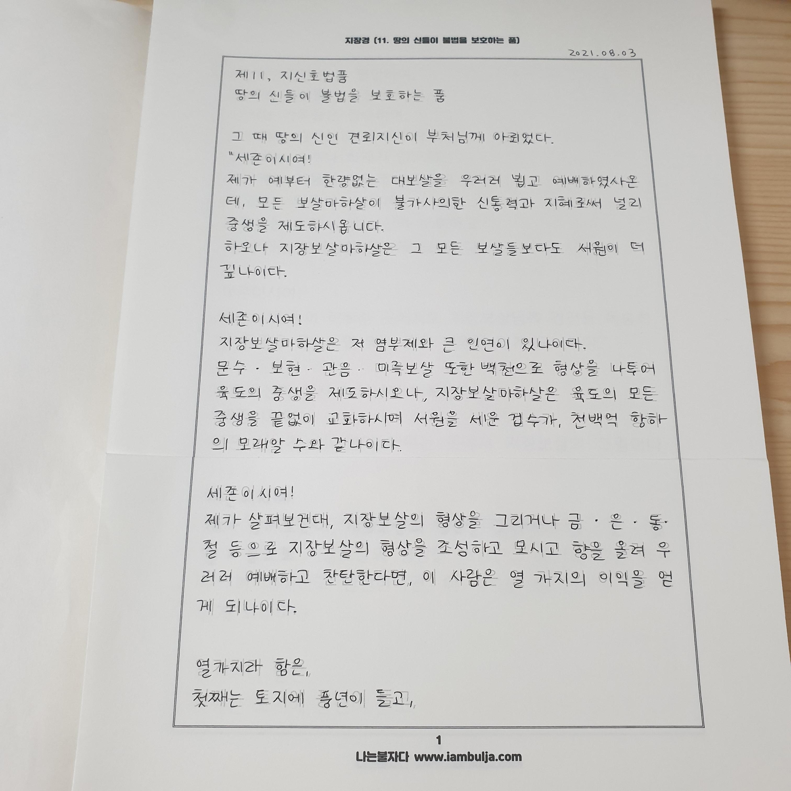 지장경 사경 11 (우리말 지장경, 사경지 양식 링크)