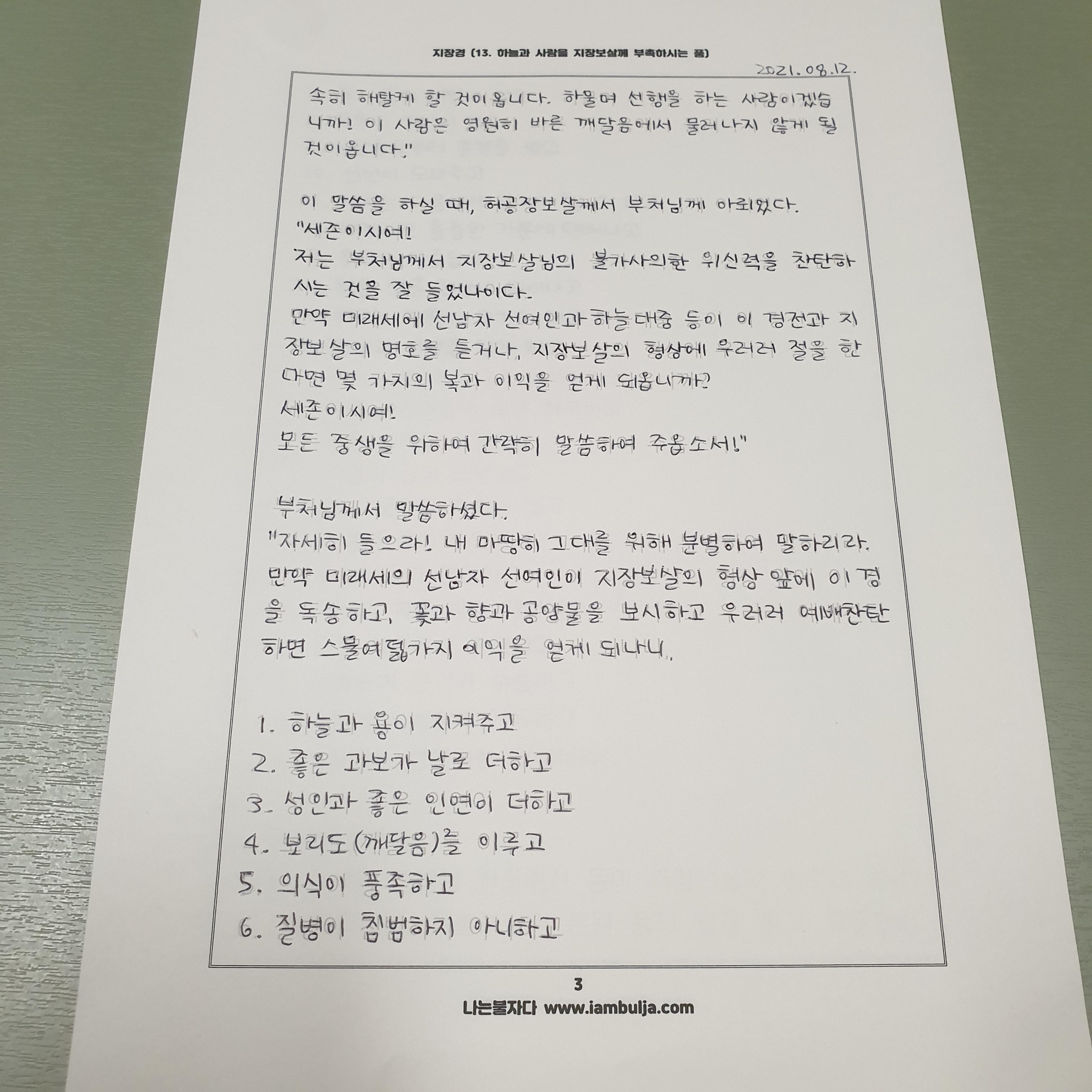 | 지장경 사경 12 (우리말 지장경, 사경지 양식 링크) (0) | 2021.08.05 |