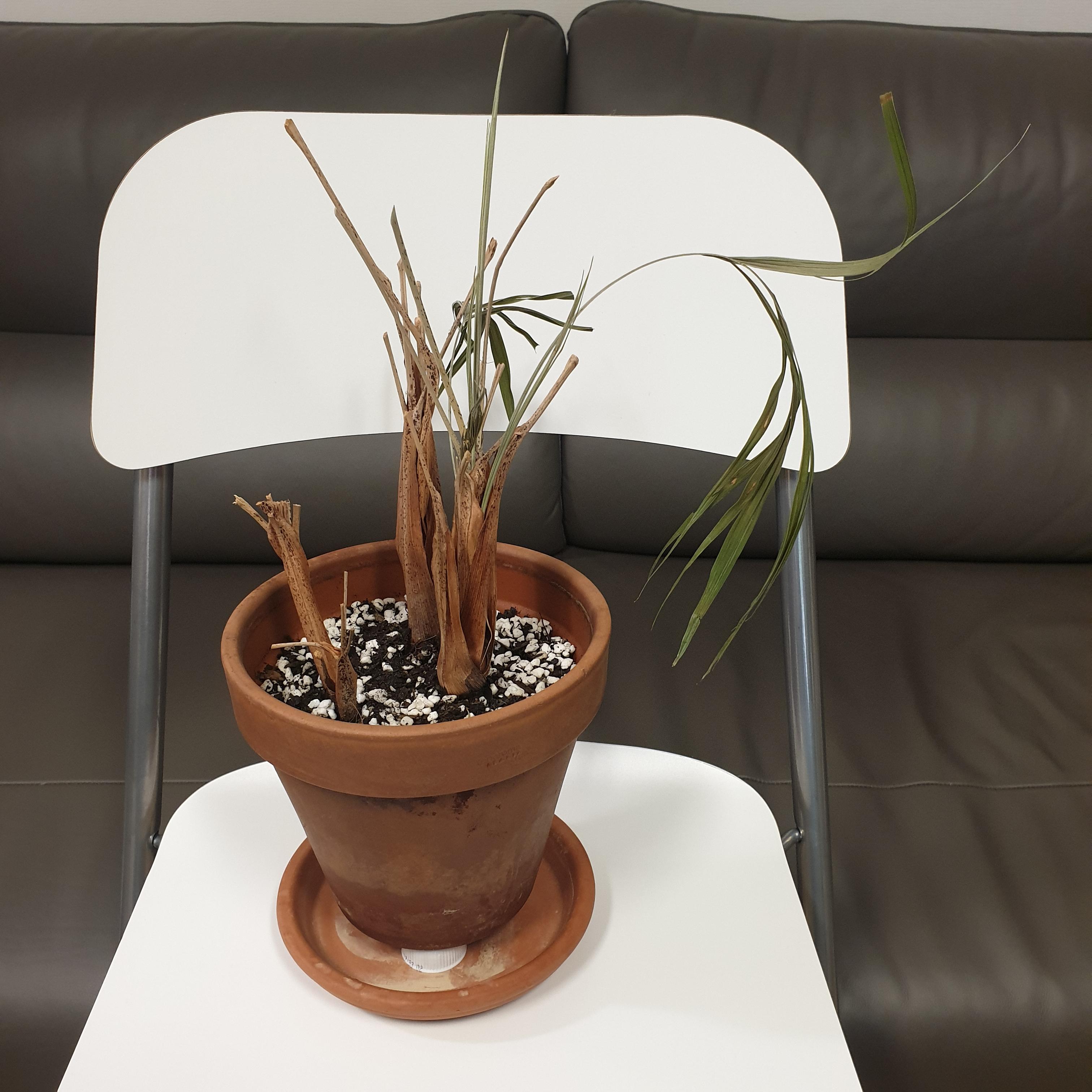 겨우 살아있는 아레카야자가 있었어요